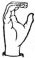 На ћирилици написано ПЕРО СИМИЋ састоји се из 9 слова [?]. Исписано ћириличном једноручном азбуком за глувонеме: